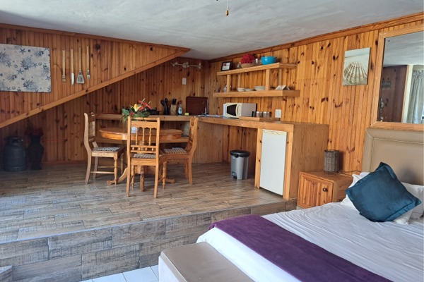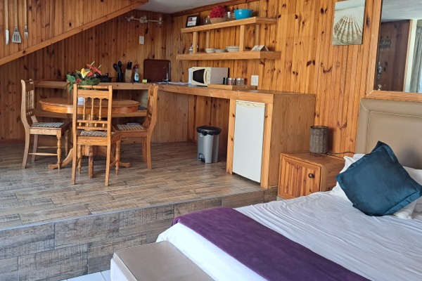 Self Catering rooms have small kitchenette with microwave, gas stove and wash basin as indicated.